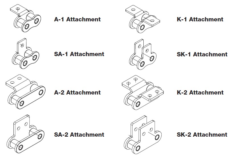 การดัดแปลงโซ่นั้นไม่ตายตัว มีรูปแบบไม่มีที่สิ้นสุด ทั้งหมดนี้ทำเพื่อดัดแปลงให้เข้ากับการใช้งานเพราะโซ่จะต้องถูกนำไปต่อกับอุปกรณ์ลำเลียงอื่นที่ใช้นำพาสินค้าในไลน์การผลิตนั้นเอง.